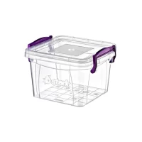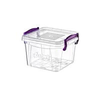 Cutia de alimente Sterk in forma patrata, cu capacitatea de 0.3 litri (300 ml) din gama Maya este un recipient transparent pentru depozitarea gustarilor reci, a unei portii de mancare sau a sandwitch-urilor. Fabricata din polietilena (plastic alimentar) ofera siguranta si incredere, intrucat nu modifica aroma sau mirosul. Aceasta cutie alimente Sterk are un design patrat este compacta si durabila, chiar si impotriva socurilor repetate. Manerele mobile fac transportul cutiei usor si convenabil. Capacul cutiei alimente este fabricat din acelasi plastic iar marginile sale pot sigila foarte bine continutul, astfel incat sa nu permita scurgerea (in cazul mancarurilor moi).