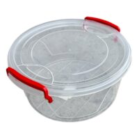 Cutia alimentara rotunda si transparenta cu capacitatea de 2.4L este un produs practic si util pentru pastrarea si transportul sau depozitarea mancarurilor, fructelor, legumelor sau gustarilor. Fabricata dintr-un plastic netoxic (fara bisfenol A ingredient toxic), aceasta cutie alimente rotunda este sigura atat pentru tine cat si pentru intreaga familie. Cutia are o capacitate 2.4 litri, fiind potrivita pentru stocarea mai multor portii de mancare medii sau a sandwitch-urilor pentru picnic. Pe langa cele mentionate mai sus, cutia alimentara rotunda Maya mai poate fi folosita si pentru pastrarea ingredientelor perisabile in frigider sau pentru stocarea fainii, malaiului, sau cerealelor in propria camaruta. Mai mult decat atat, are o transparenta de 100% ce iti permite sa vizualizezi continutul, iar capacul capabil sa ermetizeze asigura pastrarea prospetimii si a aromei alimentelor.