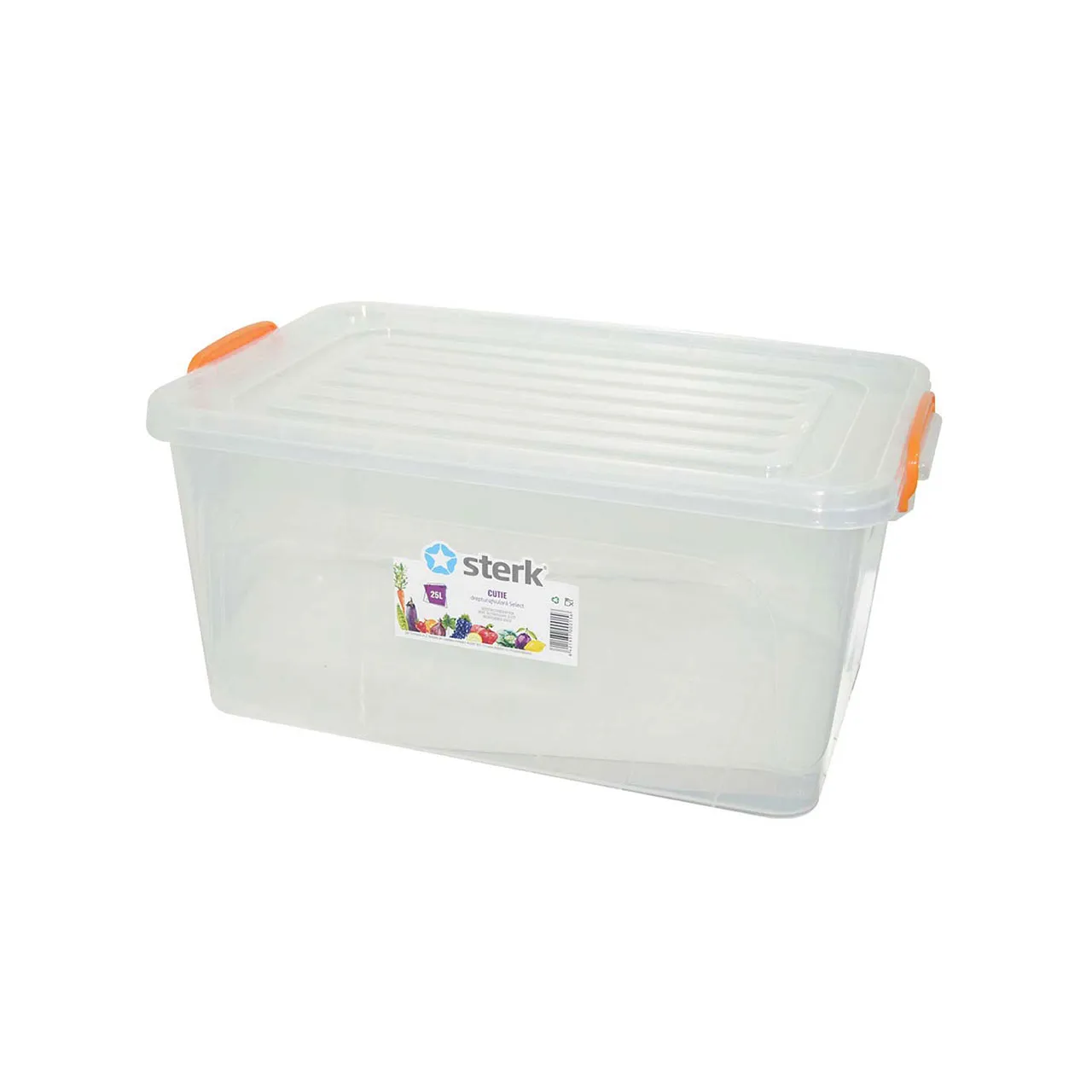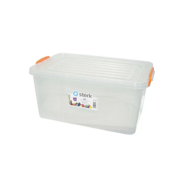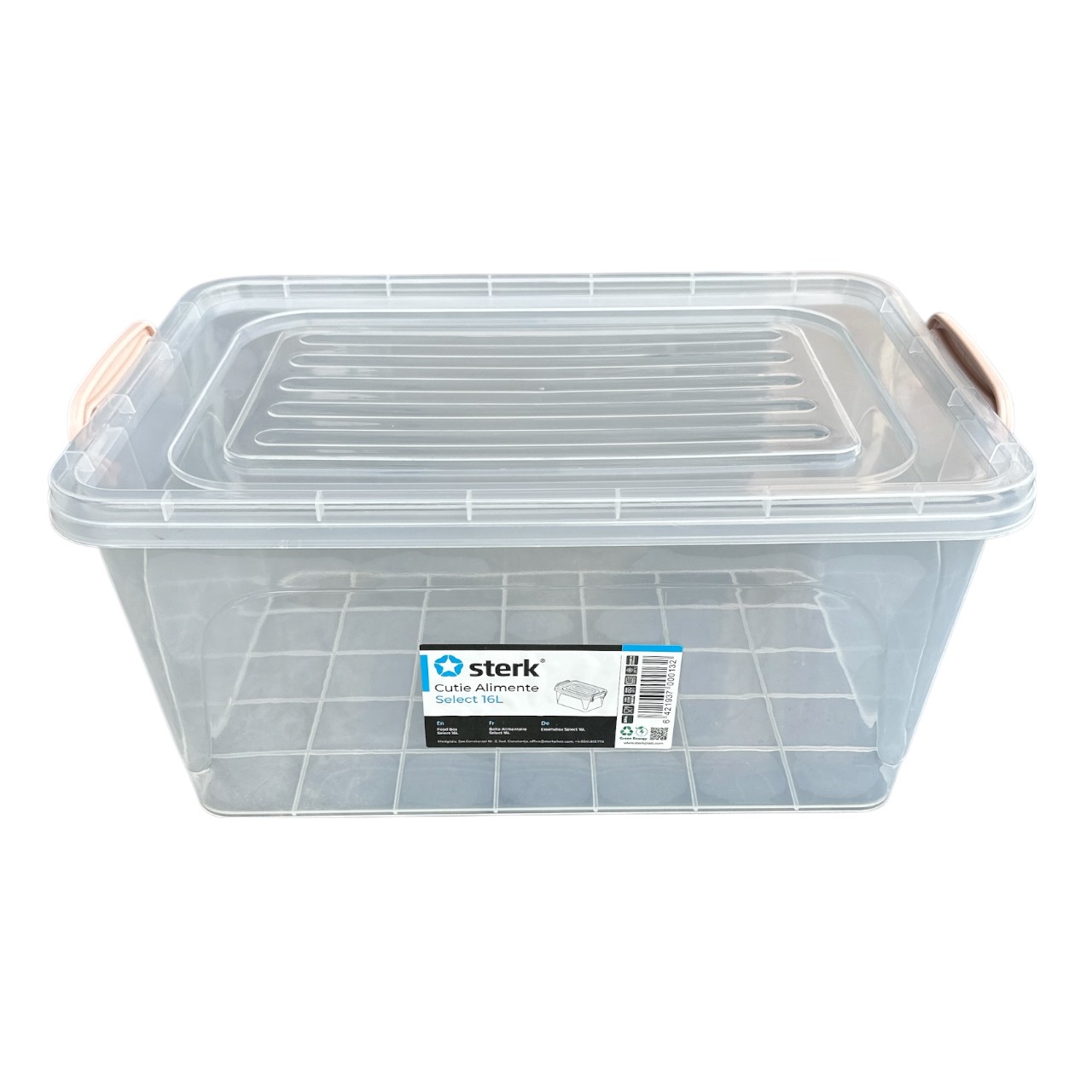 Cutia fabricata de Sterk pentru depozitarea alimentelor cu capac are o capacitate de 16L fabricata dintr-un material din plastic rezistent, cu o forma dreptunghiulara si transparenta este practica si utila in orice bucatarie sau locuinta. De asemenea, acest recipient este ideal pentru depozitarea alimentelor in frigider cat si pentru transportul acestora. Produsul poate fi depozitat in congelator, fiind compatibil la temperaturi scazute. Cutia pentru depozitarea de alimente dispune de o pereche de manere si este distribuita impreuna cu un capac de plastic corespunzator pentru o inchidere ermetica si sigura, fiind totodata potrivita pentru transportul diverselor preparate culinare.