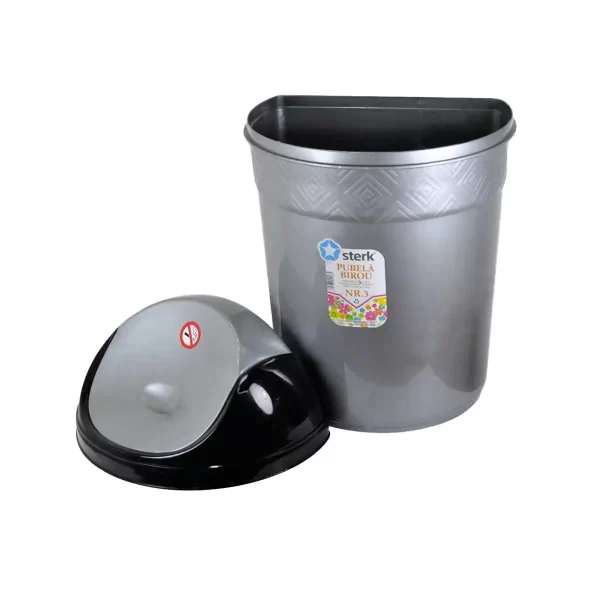 Pubela de birou Sterk de 10 L de culoare gri este un cos de gunoi din plastic PP / polipropilena in forma de semicerc cu spate drept ce vine dotata cu capac batant ce poate fi detasat. Pubela de birou de 10 litri exte excelent pentru aruncarea gunoaielor menajere, putand fi amplasat foarte usor in birou, bucatarie, baie sau la intrarea intr-un spatiu comercial. Pubela de birou de 10l este rezistenta la factorii exteriori si schimbarile climatice, astfel incat sa nu se deterioreze din cauza variatiilor de temperatura, apei sau murdariei. Pubela de birou Sterk are un aspect modern cu suprafata lucioasa, incadrandu-se cu succes in orice design.