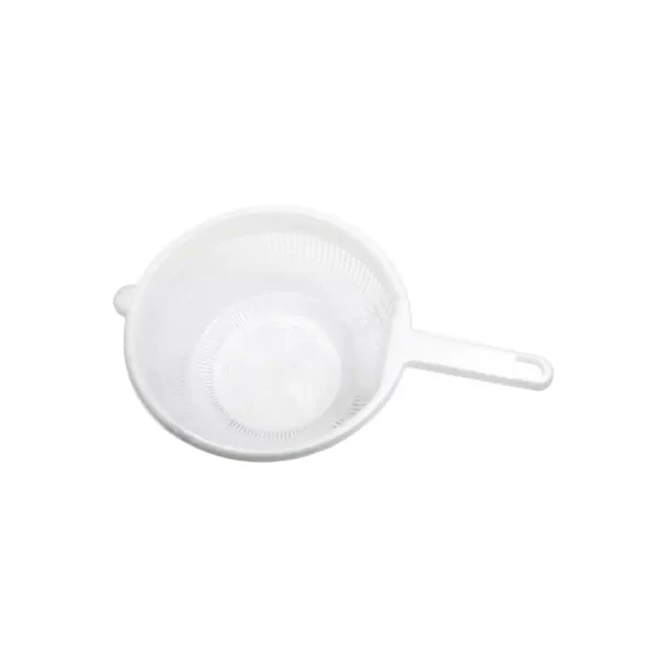 Sita sau strecuratoarea de culoare alba si confectionata din plastic, cu un diametru de 23 cm (230 mm) si o lungime de totala cu tot cu maner de 36 cm (360 mm) este un accesoriu indispensabil din orice bucatarie, fie cea proprie sau cele din industria alimentatiei publice. Strecuratoarea din plastic este des utilizata pentru spalarea fructelor de dimensiuni mici sau a legumelor, strecurarea pastelor, precum si pentru scurgerea apei din branza. Fiind confectionata din plastic alimentar, strecuratoarea pentru branza nu schimba proprietatile nutritive ale alimentelor si va rezista in timp utilizarilor multiple. Datorita manerului cu care este dotata, sita din plastic poate fi manevrata mult mai usor, iar faptul ca la capatul manerului este prevazut un orificiu, acest lucru face ca strecuratoarea sa poate fi agatata.