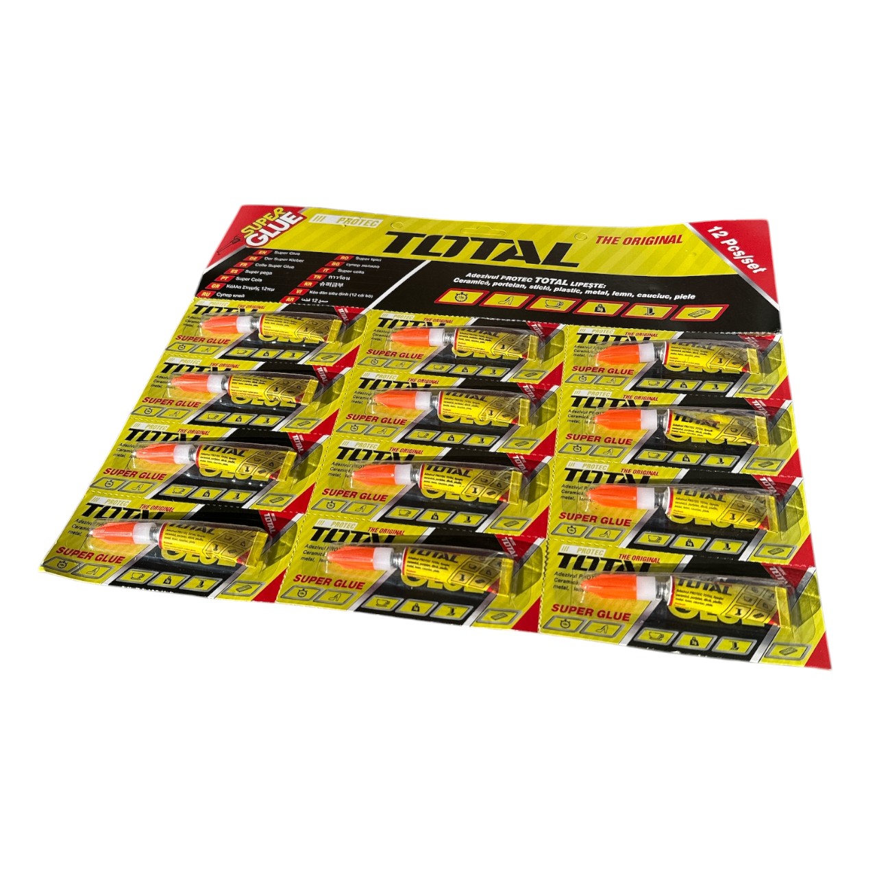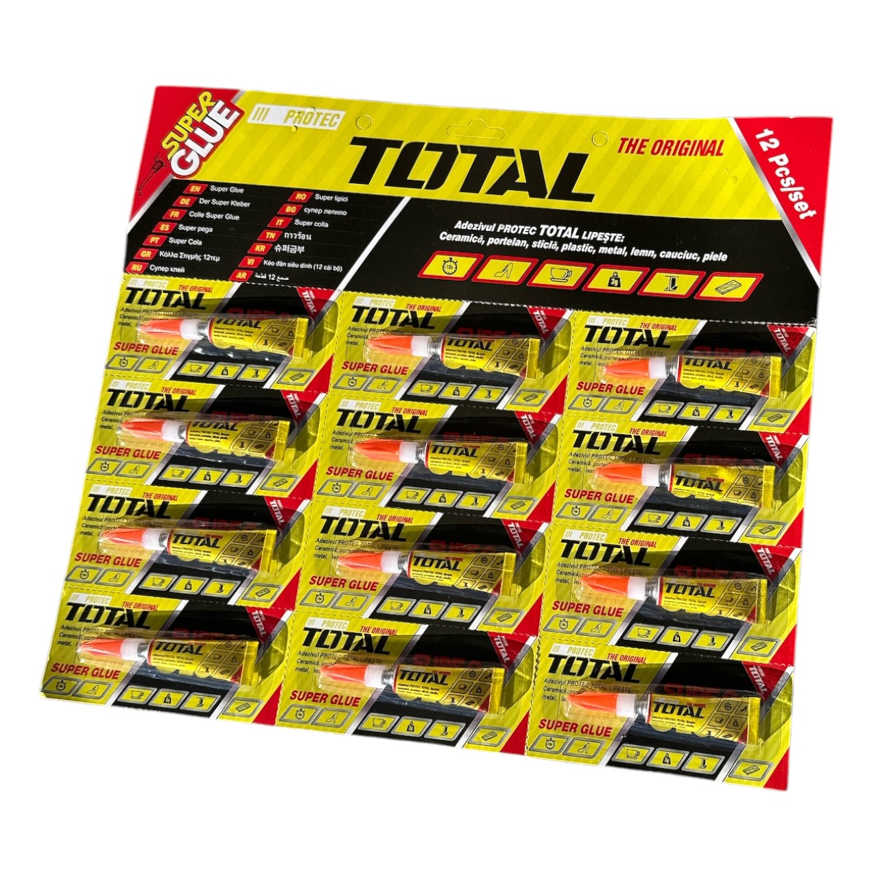 Alege Super Glue TOTAL, 3g, set 12 bucăți pentru lipituri sigure și de lungă durată!