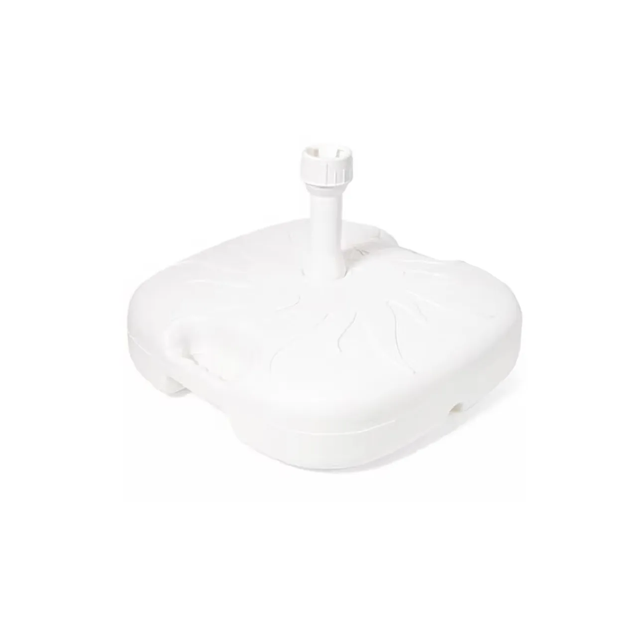 Suportul de umbrela din plastic de gradina si terasa de culoare alba este un produs rezistent si elegant, proiectat pentru a oferi fixare si stabilitate umbrelei, pentru a evita rasturnarea acesteia in caz de vant puternic. Suportul de umbrela plastic este prevazut cu un orificiu de umplere fie cu apa sau nisip, pentru a asigura o greutate adecvata si a-i conferi o stabilitate maxima. Umplerea cu apa sau nisip se face foarte usor si rapid, iar suportul poate fi mutat cu usurinta datorita manerului incorporat. Acest suport umbrela gradina terasa din plastic este perfect pentru a-ti completa masa de gradina sau terasa cu orice fel de umbrela, fara sa stai cu grija ca se va clatina sau inclina.