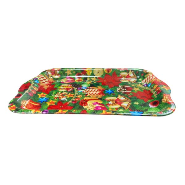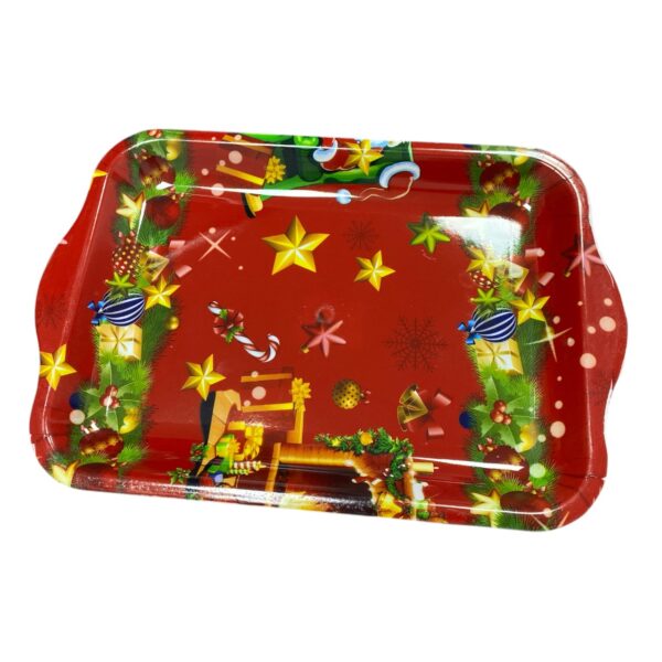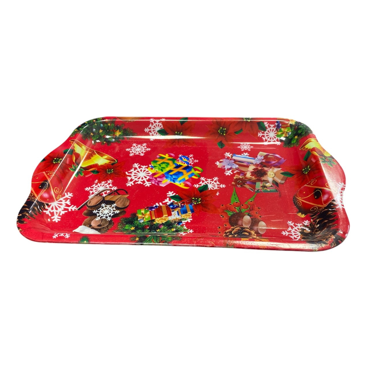 Tava Craciun decorativa din plastic, cu dimensiunile de 34x25.5 cm este placut colorata cu rosu si alb si are decoratiuni imprimate cu conuri de brad, globuri colorate si tulpini de brad pe toata marginea sa. In plus, pe centru are clopoeti aurii, completand imprimeul colorat. Aceasta tava decorativa pentru Craciun adauga un strop de bucurie eleganta dar si un spirit festiv in timpul sarbatorilor de iarna. Tava decorativa este realizata din plastic durabil are manere latelare incorporate fiind usor de manipulat. Mai mult decat atat, se poate spala extrem de usor astfel incat sa poti servi de cate ori ai nevoie, bauturi si gustari traditionale. Cu forma sa dreptunghiulara si si decorata vesel, vei imbunatati atmosfera de Craciun.