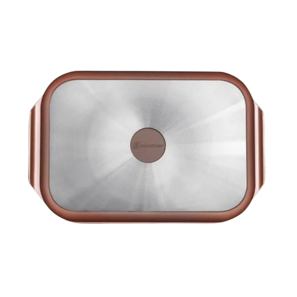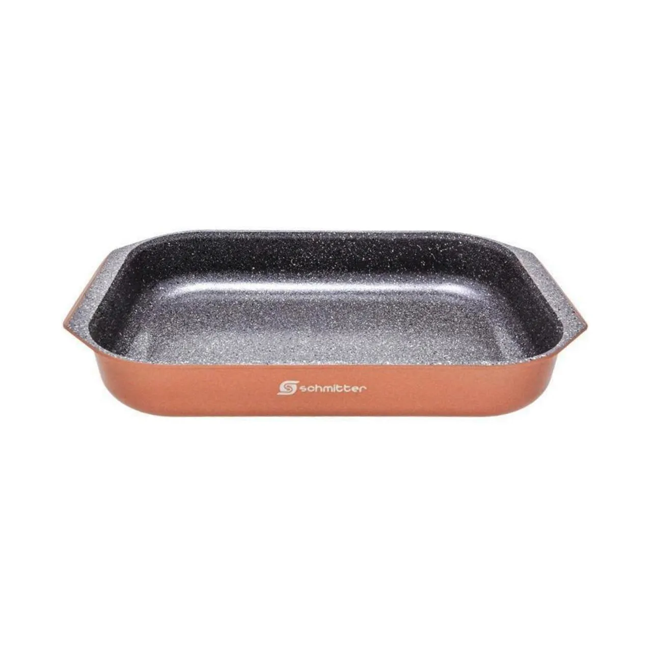 Tava ceramica cuptor Schmitter cu dimensiunile 39.5 x 26 x 7 cm pentru copt de este cu adevarat un instrument eficient in bucatarie, conceput pentru a face gatitul mai placut si mult mai eficient. Intrucat este fabricata din aluminiu turnat pe exterior, care are proprietati excelente de distributie uniforma a caldurii si durabilitate in timp. Interiorul este alcatuit din 3 (trei) straturi de ceramica non-aderenta ce previne lipirea alimentelor dar si contribuie in acelasi timp la rezistenta termica.