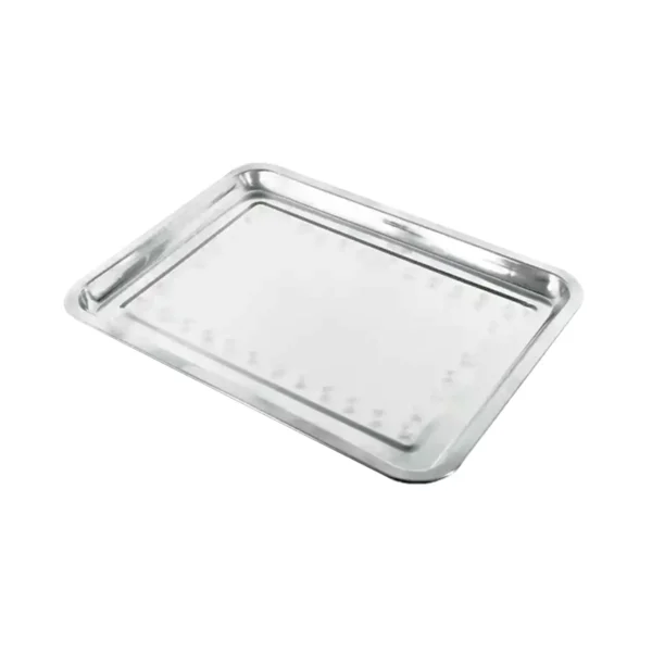 Tava din metal, cromata pentru servire cu dimensiunile de 40 x 30 cm este o tava mare cu inaltimea de 2 cm, ideala pentru servirea mancarurilor, intr-un mod comod si rapid. Aceasta va ajuta sa transportati cu usurinta farfurii, castroane sau pahare de la bucatarie pana la masa unde serviti. Mai mult decat atat, tava de metal pentru servire este foarte rezistenta la socurile mecanice cat si impactului (in cazul in care o scapati din mana), nu se deformeaza si nu se zgarie usor. Tava din metal de servit masa se poate curata atat manual cat si in masina de spalat vase.
