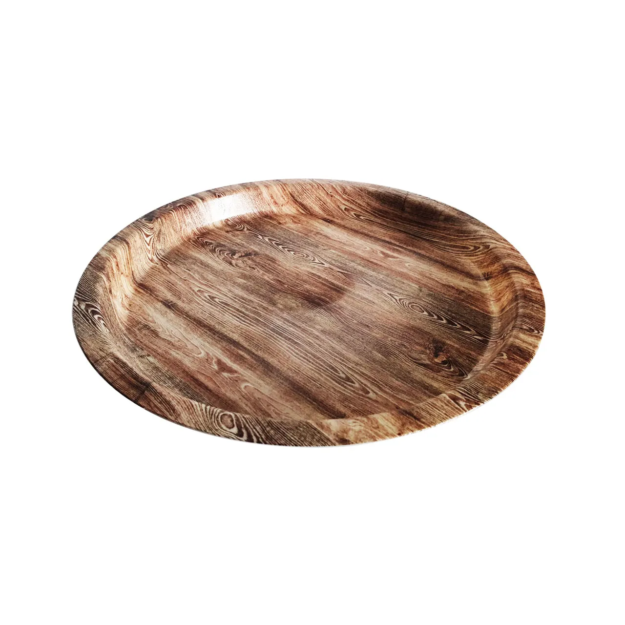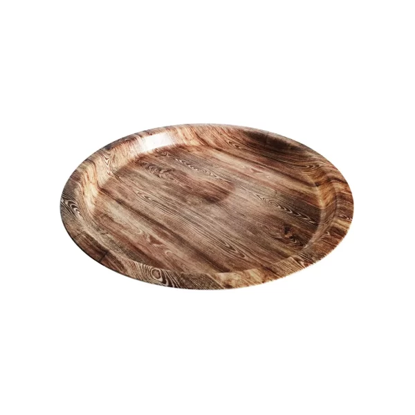 Tava pentru servire, cu aspectce imita lemnul, are un diametru de 32 cm, este fabricata din polietilena, fiind perfecta pentru utilizarea in restaurantele traditionale si rustice. Aceasta tava pentru servire este ideala pentru prezentarea si servirea mancarurilor, bauturilor si gustarilor intr-un mod autentic. Aceasta nu numai ca ajuta ospatarul sa serveasca rapid si eficient clientii, ci si ofera o experienta autentica in restaurantele care promoveaza un stil de viata traditional si o ambianta rustica.