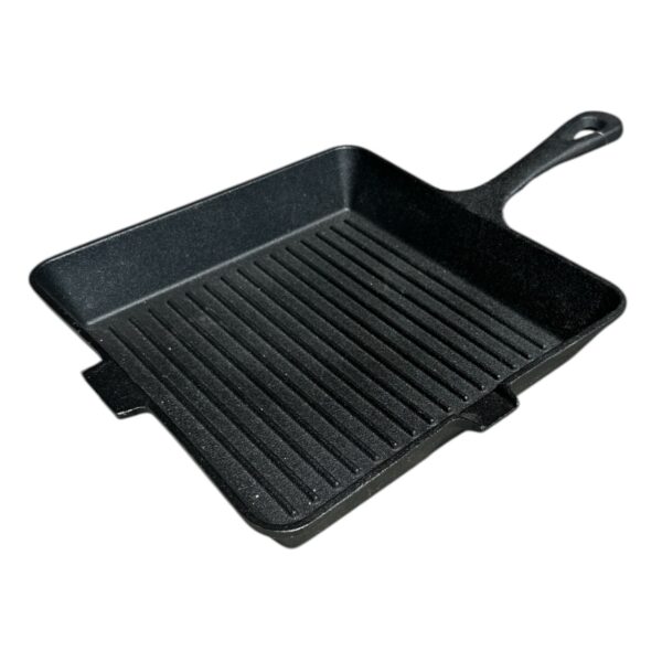 Tigaia grill din fonta pentru aragaz, cu dimensiunile de 25x4.7 cm este in forma patrata, cu pereti inalti de 4.7 cm, dispune de o coada turnata si o fanta pe lateral pentru a permite eliminarea surplusului de lichid / grasime. Aceasta tigaie grill este fabricata din fonta plina ce ofera o distributie uniforma a caldurii, asigurand prepararea in profunzime a carnii (fripturilor) si multor alte alimente. Tigaia grill din fonta este ideala pentru gatitul carnii de pui, porc, vita, a legumelor, oferindu-va gustul Designul sau cu pereti inalti ajuta la pastrarea chiar si a sosurilor in timpul gatirii carnii.Cu coada sa turnata si fanta de pe lateral, aceasta tigaie grill faciliteaza manevrarea si eliminarea surplusului de lichid sau grasime. Este recomandat sa urmati instructiunile de ingrijire a tigaii grill din fonta, inclusiv sa o curatati si sa o uscati corespunzator pentru a mentine calitatea si durabilitatea sa pe termen lung.