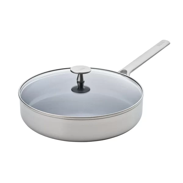 Tigaie inox profesionala 28 cm dotata cu capac sticla, interior ceramica si maner lung are are proprietati antiaderente, astfel incat alimentele nu sa nu se lipesca de suprafata, fiind si mai usor de curatat. Acest tip de tigaie inox are avantajul ca poate fi folosita pentru gatitul la temperaturi ridicate, dar si pentru gatitul la temperaturi scazute, iar ceramica nu emite substante toxice atunci cand este incalzita, asa cum poate face teflonul.
