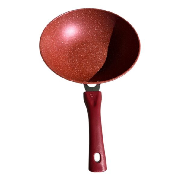 Tigaia Wok din aluminiu teflonat cu diametrul de 30 cm va ofera un gatit sanatos, intrucat materialul nu contine cadmiu, plumb sau alte chimicale folosite in procesele de productie (PFAS sau PFOA) este extrem de rezistenta la temperaturi inalte, zgarieturi si nu se degradeaza in timp. Mai mult decat atat, o astfel de tigaie wok din aluminiu teflonat nu va elibera fum nociv in timp ce prajiti, nu lipeste datorita suprafetei non-stick si o poate fi utilizata si fara ulei pentru un gatit cat mai sanatos. Tigaia din aluminiu teflonat tip WOK se poate utiliza pe orice sursa de incalzire, inclusiv pe inductie. Produs destinat atat amatorilor de gatit cat si bucatarilor profesionisti.
