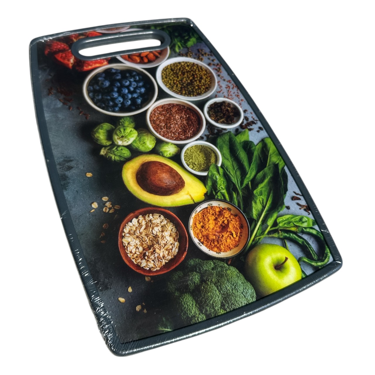 Tocatorul din plastic de bucatarie cu aspect placut de fructe, confectionat din polietilena cu densitate crescuta, extrem de rezistent loviturilor puternice, este excelent pentru taiat sau tocat legume, taiat sau batut carnea ce urmeaza sa fie prajita sau pusa pe gratar, cat si pentru spart oase. Tocatorul din plastic pentru bucatarie este un ajutor de nadejde al gospodinelor care bucataresc preparate speciale de mancare. Acest tocator plastic de bucatarie, a fost conceput sa reziste in timp, incat sa nu fie necesara o schimbare timpurie a acestuia (nu se sparge, rezista zgarieturilor de cutit, si nu crapa datorita loviturilor puternice)