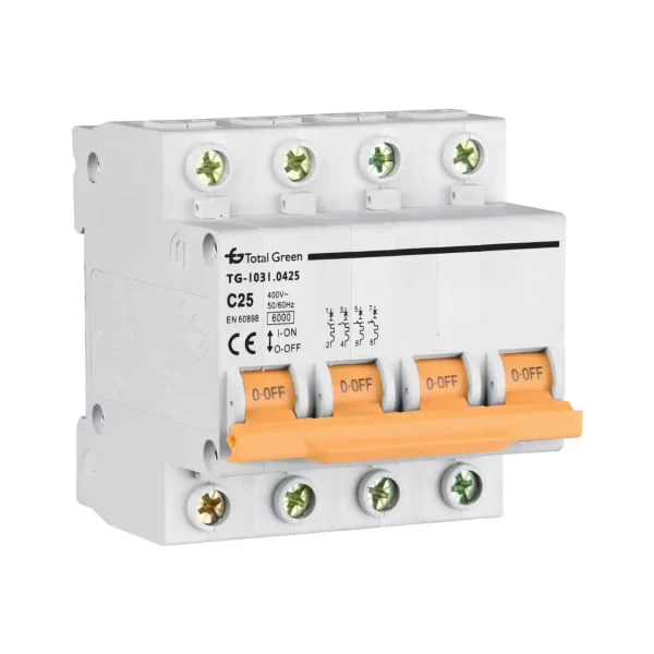 Siguranta electrica automata tetrapolara de la Total Green cu 4 poli si 50A reprezinta o componenta esentiata in evitarea accidentelor surfenite din cauza fluctuatiilor de tensiune, a scurtcircuitului sau suprasarcinii. Aceasta siguranta automata, cunoscuta si ca disjunctor electric este recomandata pentru spatiile rezidentiale, comerciale sau industriale, acolo unde incarcarea electrica este una destul de mare. Cu ajutorul intrerupatorului automat montat in tabloul electric, instalatia va fi protejata, iar dumneavoastra nu veti avea evenimente neplacute, in cazul unei supraincarcari. In momentul in care survin defectiuni de tip izolarea slaba a firelor electrice sau fluctuatiile de tensiune, debransarea de la circuitul electric se face automat, fiind nevoie doar de ridicarea clapetei in pozitia de ON dupa ce problema a fost remediata.