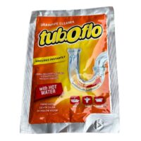 Tuboflo Solutie pentru desfundat tevi la plic de 60 g sunt mici granule, foarte puternice ce dizolva grasimile, zatul de cafea si multe alte impuritati ce infunda scurgerile. granulele in asociere cu apa calda va forma o solutie de desfundat tevi sau orice scurgere, indiferent ca dopul format este unul solid si format din grasime grea, resturi de mancare si asa mai departe. Se utilizeaza doar cu apa calda / fierbinte, nu ataca tevile sau scurgerile si inlatura orice miros neplacut.