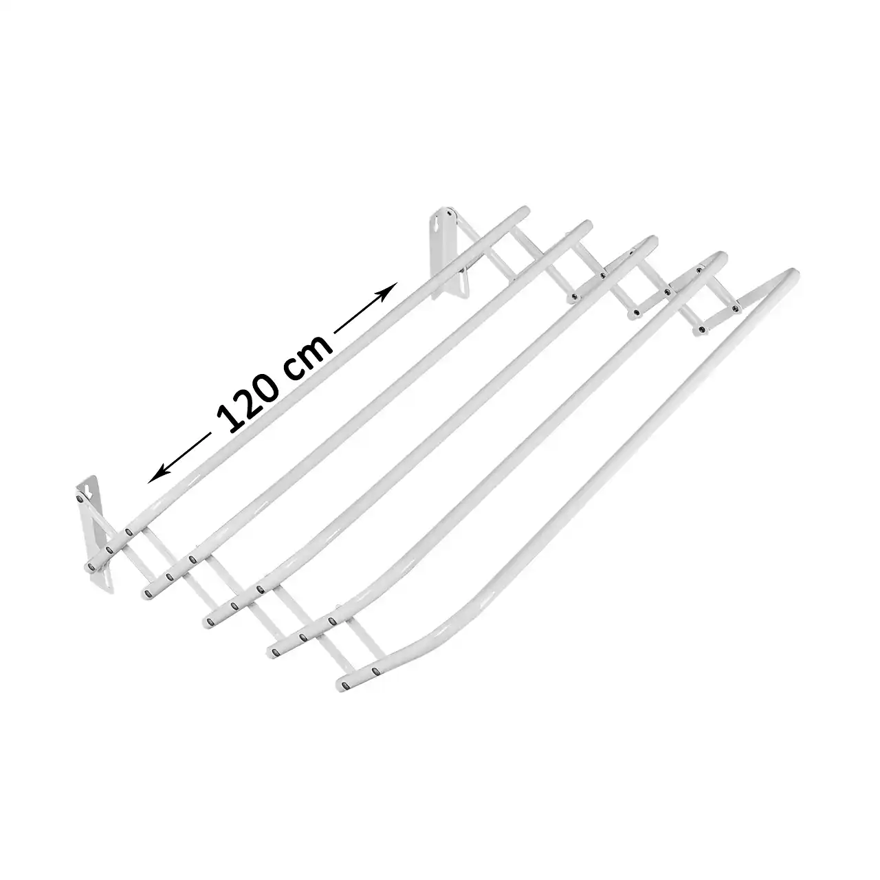 Uscatorul rufe de perete, extensibil este format din 5 bare de otel si se prinde in perete cu ajutorul holsuruburilor. Uscatorul de rufe extensibil cu prindere in perete este ideal pentru fixarea lui in baie, pe balcon sau in orice alt spatiu disponibil. Multumita posibiliatii sale de extindere si strangere, acest model de uscator rufe de perete ofera un desing minimalist, ocupa foarte putin spatiu si va ofera 6 metri liniari pentru intins rufele si rezista la greutati de pana la 10 kg. Uscatorul pentru rufe de perete tip extensibil a fost proiectat in mod special pentru micile apartamente sau camine, care nu dispun de prea mult spatiu special pentru uscarea rufelor.