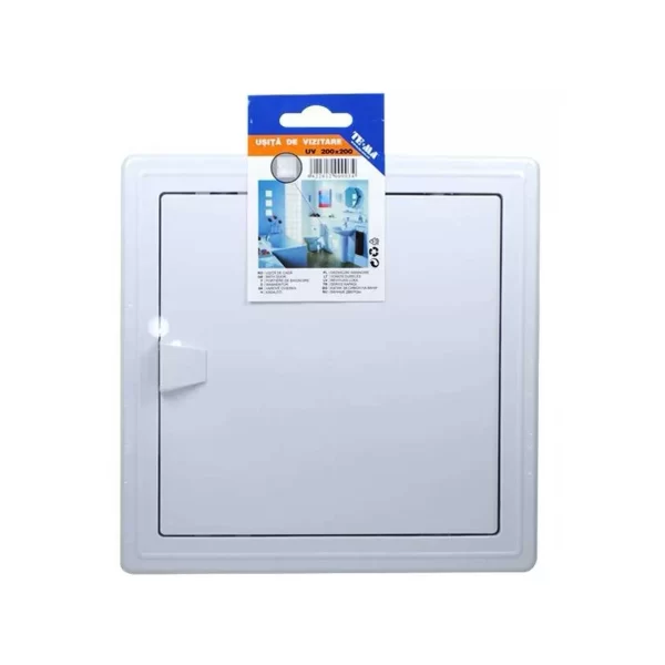 Usita de vizitare din plastic 200x200 mm de culoare alba este moderna, dura, rezistenta si estetica oferind incaperilor o finisare corespunzatoare. Utilizata in constructii si amenajari interioare, usita de vizitare din plastic faciliteaza accesul la mecanismele de inchidere-deschidere robineti, sifoane de scurgere, coloane de apa, fire electrice sau distribuitori. In acest fel, se asigura accesul rapid pentru reparatii, oprirea de urgenta a instalatiei sau verificari si eventual lucrari de reparare / mentenanta. usa de vizitaresunt concepute sa mascheze locul, oferind un design placut un aspect placut si curat. Usita vizitare 200x200 mm se monteaza cu mare usurinta, prin zidirea acestuia cu mortar, tencuiala sau lipirea ei pe fainata si rigips cu silicon sanitar. Este recomandata pentru golurile de acces din bai, bucatarii, holuri, birouri si ateliere sau puncte de lucru interioare.